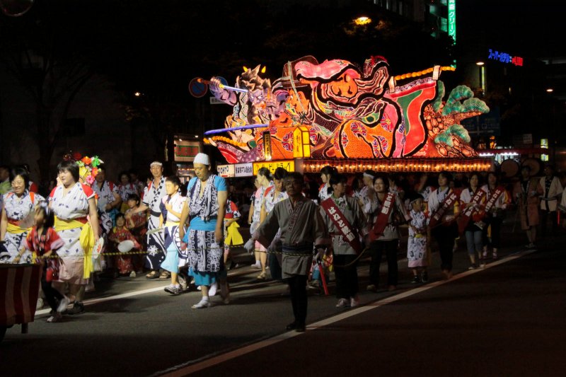 ねぶた(「戸隠山の青嵐」)が間近に迫ってきました。綺麗なことはもちろんですが、昼間より大きく見えます。