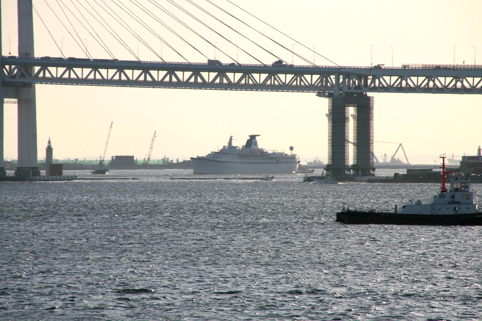 7時18分、入港予定の7時20分よりむしろ遅れてやっとプリンセスダナエが姿を現しました。寒い!ネックウォーマーを