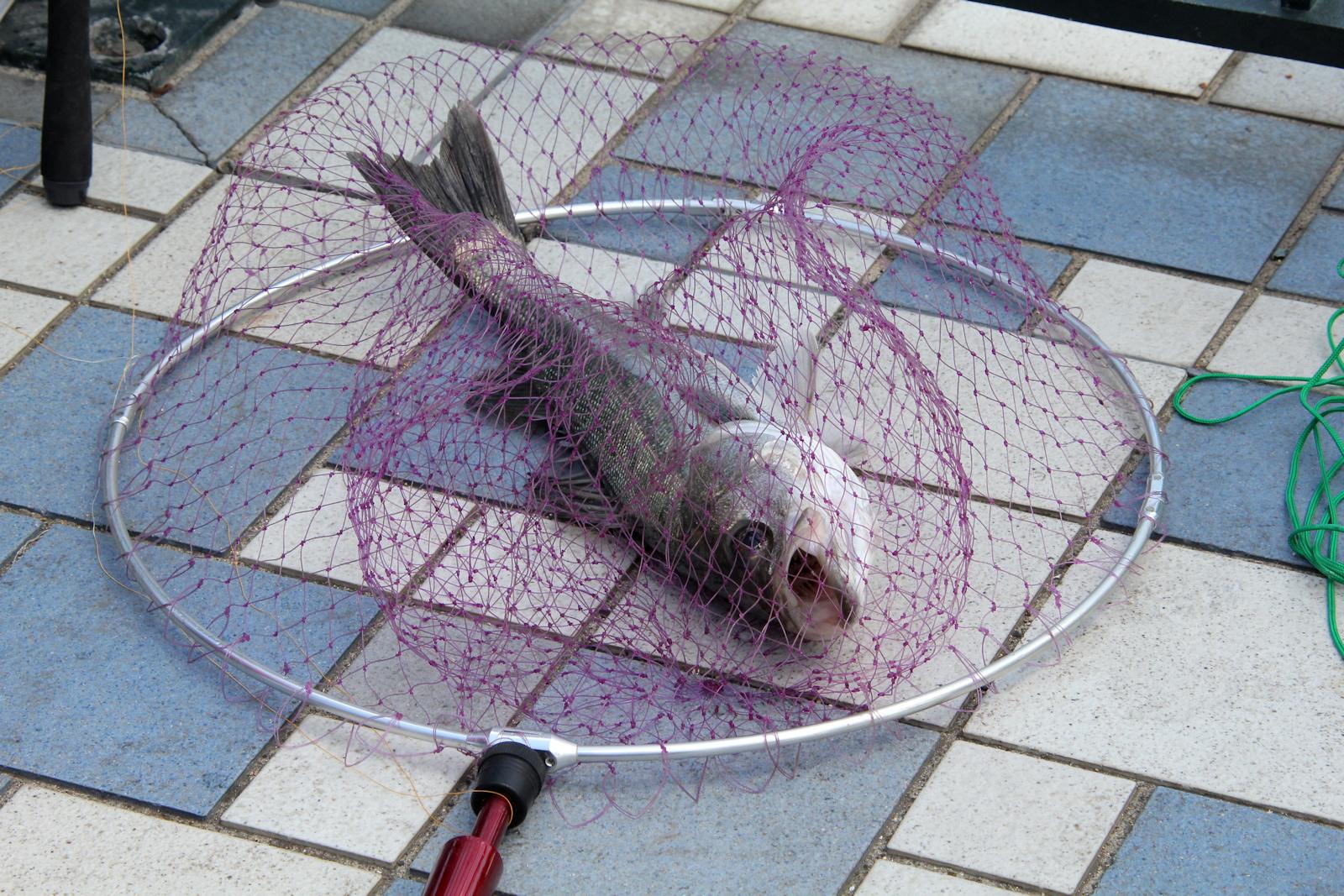 近くで釣りをしていた方がつり上げた大きな魚。スズキの子供「セイゴ」らしいです