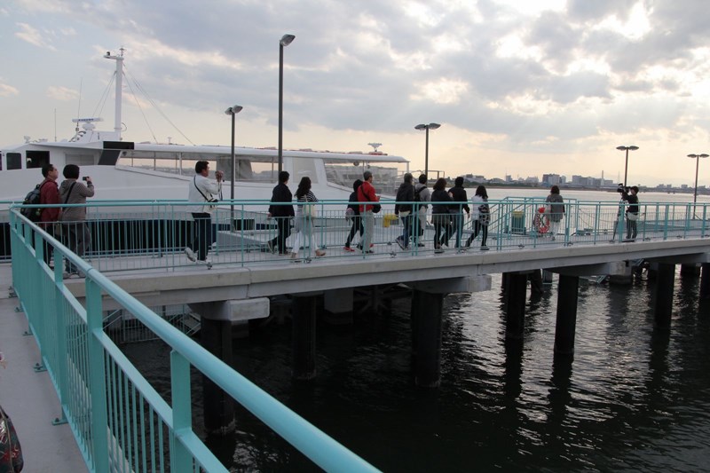 ボイジャー・オブ・ザ・シーズの出航を見送るクルーズ船「オセアンブルー」へ