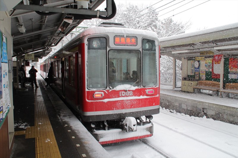 宮ノ下駅はホームがほぼ吹きさらしで、屋外と変わらないので、大平台駅へ