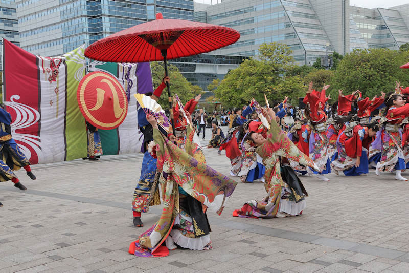 | このイベント(オフィシャルサイトはこちら)以前は毎年撮っており、最後に行ったのは2019年です。その後新型コロナがあったり、記憶があいまいですが、リアルで見られる無料観覧席が無くなってしまったり(?)で、しばらく行っていませんでした。 今年久々にオフィシャルサイトを見たところリアルの無料観覧席のある石と光の広場会場に行ってきました。私はよさこいはもっぱら流し踊りを撮っていましたが、この会場は踊り手との距離が近、く固定演舞でも変化のある写真・動画が撮れました。 |