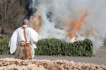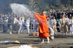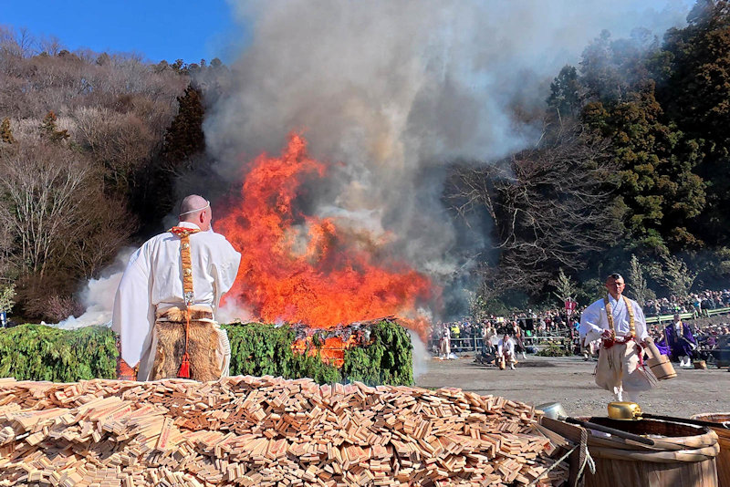 | 高尾山火渡り祭(オフィシャルサイトはこちらです)は、新型コロナにより2020年だけは中止になりましたが、2021年からは毎年開催されています。非常に見応えのあるイベントですが、儀式が始まるのは13時過ぎ、全体的には混雑もさほどひどくはないのですが・・・・・・・撮影場所の確保は非常に大変です。 まともに撮影するには最前列の確保が必須ですが、とにかく早くいかなければなりません。以前は9時過ぎでも十分大丈夫でしたが、最近は8時くらいにベストポジションはかなり埋まっています。 そして、無事に場所取りができたとしても、お坊さんの人垣で視界が遮られることがしばしば。隙間から首尾よく撮れるか、これはもう運任せです・・・・・・・・そして今年は、残念ながらハズれ気味でした。 |