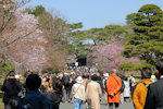 | 今年の東京の桜は3月19日に開花が発表され、平年より5日早いそうですが、その後寒い日もあったりで、やや足踏みの感があります。そしてどうもこの先晴天があまり期待できないようで、この日は平日の火曜日でしたが、晴天のためかそこそこの人出でした。この日まわったのは (1)皇居乾通り一般公開 (2)代官町通りから国立劇場 (3)新宿御苑です。 皇居乾通りや国立劇場は8分咲きくらい、新宿御苑は早咲きの大きな枝垂れ桜は見事な満開でしたが、全体的には5〜6分咲きくらいでしょうか。また国立劇場に行く途中の千鳥ヶ淵公園は1〜2分、そして遠くからしか見ていませんが千鳥ヶ淵緑道もまだあまり咲いていないようです。 ということで、今年は場所によるバラツキ、そして同じ場所でも開花の進行がかなりバラついている感じを受けました。 |