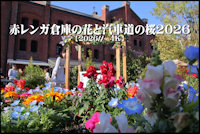 赤レンガ倉庫の花と汽車道の桜