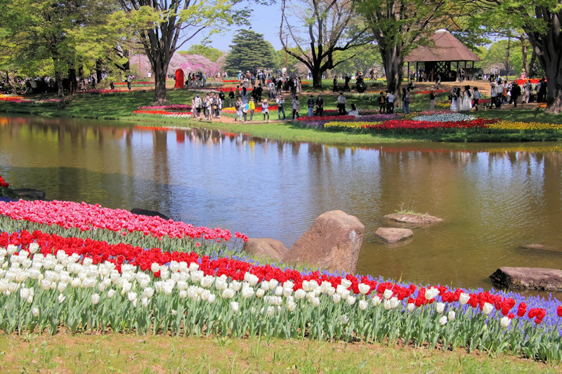 | どうも今年は春先の天気が悪く雨ばかり。東京も桜の開花後15日のうち10日が雨だったそうです。それでもこの日は先週金曜日以来のきれいな青空に恵まれました。 この日は、チューリップの見頃を迎えた昭和記念公園(オフィシャルサイトはこちら)に行ってきました。今まさに見頃のピークという感じで、いつもながらその華麗さに圧倒されます。桜はさすがに見頃を過ぎていましたが、一部まだ綺麗に咲いている木もありました。 今度の週末土日も晴れの予報が出ており、チューリップもややピークは過ぎそうですが、その頃までは見頃が続くのではないかと思われます。 |