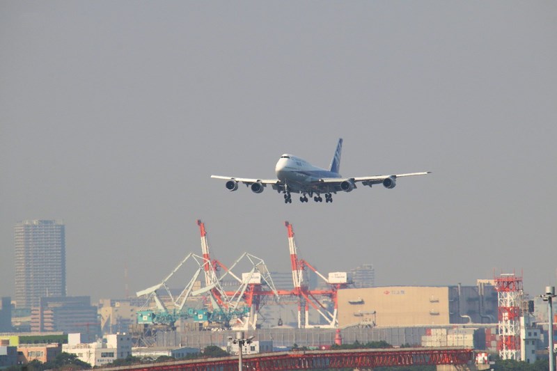 横風用B滑走路に降りてくるANAのジャンボ。この日の着陸は殆どB,D滑走路でした
